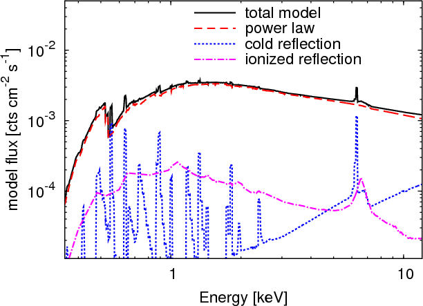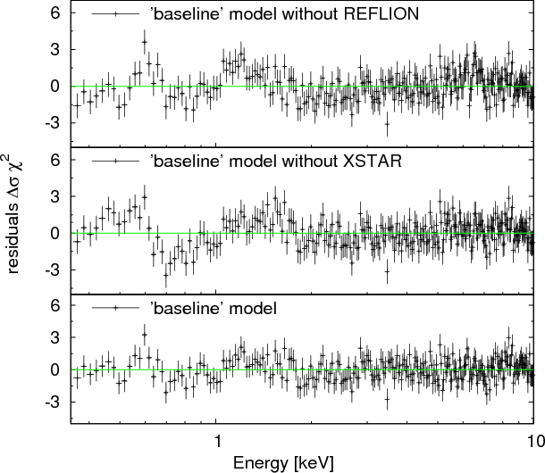 cm-2); c) an ionised reflection where the reflecting gas could be either in the inner wall of a warm absorber cone or in an ionised accretion disc.