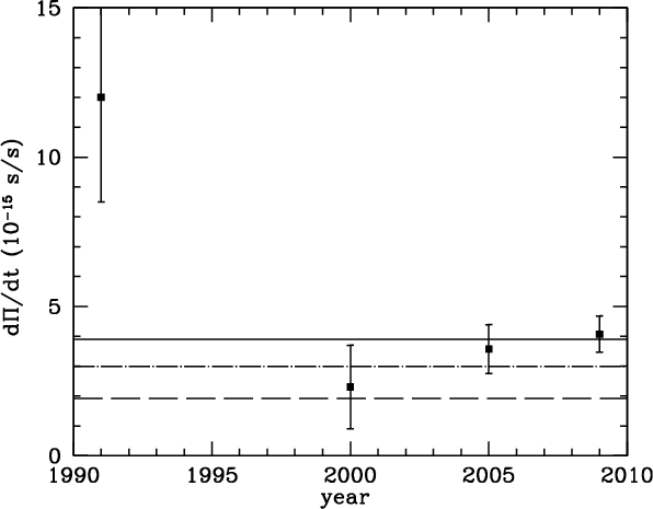 calculations, the secular rate of period change increases by 50%, although the exact value depends on the core temperature and,