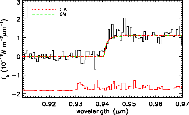 We model the absorption with a host-galaxy DLA, surrounded by an ionised region of unknown size r, within the IGM of neutral fraction,
