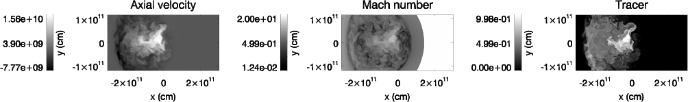 , is a variable that indicates the composition of the fluid in a given cell (see e.g., Perucho et al. 2005), with a value of 0 corresponding to pure wind material, 1 to pure jet material, and any value between 0 and 1 indicating the relative amount of jet material in a cell where mixing has occurred.