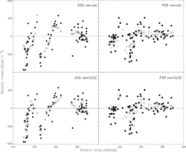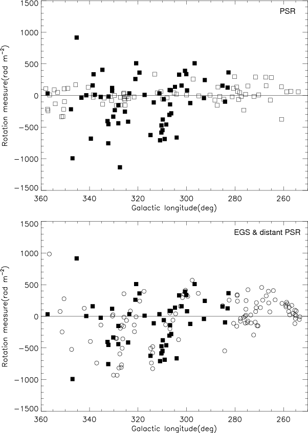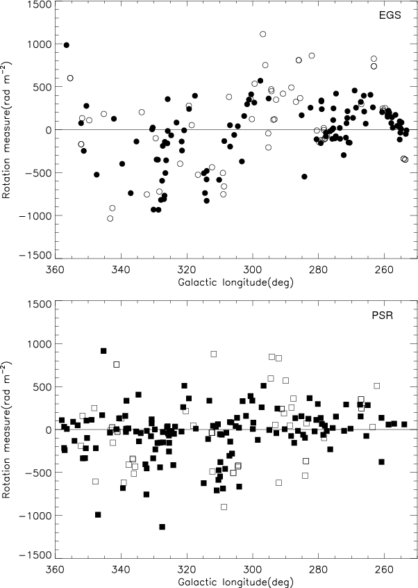 used RMs of 148 EGS close to the Galactic plane (
