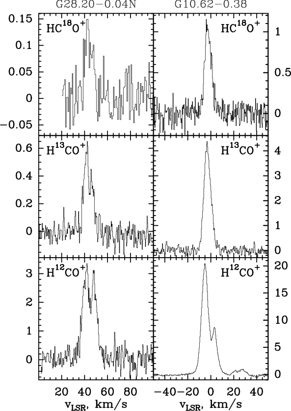 and/or HCO+(1-0) and H
