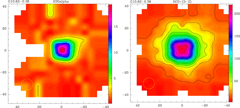 7 UC HII regions. The HCO+(3-2)