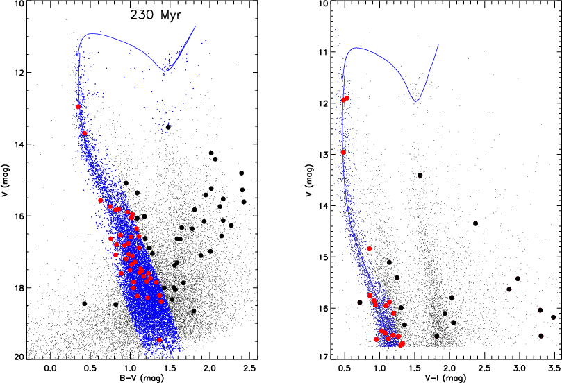 Conclusions. A comparison with the younger M 35 cluster (150 Myr) and with the older M37 cluster (