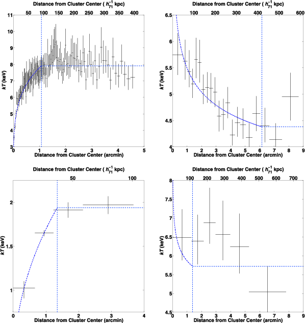 temperature profile to a broken powerlaw. The slope of the inner kTprofile was fixed at zero and the outer kT profile fit well to a