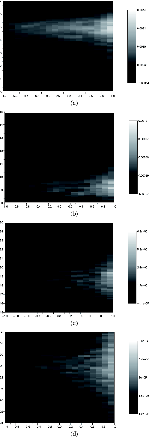 Equation (7) may be inverted to derive the value z of the energy perturbation for which the probability to have a perturbation greater in absolute value than z is equal to a given p. We obtain two solutions, z+ and z-, one for the positive perturbations and one for the negative ones. Each solution is given by