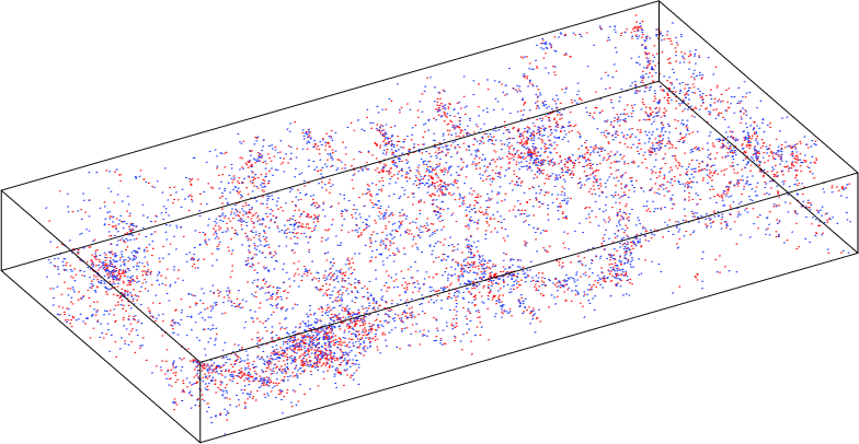 The problem are the mutual positions, given the positions of all galaxies without mark information. Since the three partial two-point correlation functions shown in Fig. 2 are different for a large range of scales, the marking with marks 1 and 2 cannot be an independent marking, where every galaxy obtains its mark randomly, independent of the other galaxies. In contrast, there must exist a spatial correlation between the marks. As it was shown in Fig. 5, the mark connection function is the appropriate tool to measure this correlation.