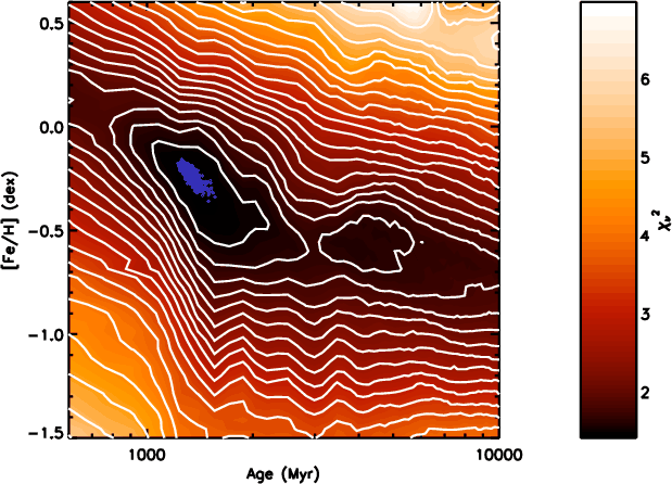 (<150 Myr, and [Fe/H] = 0.4) component with constant