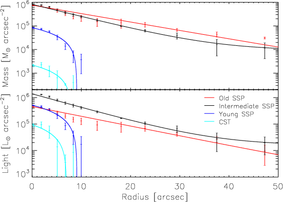 0.1). Both these component make a negligible contribution to the spectra of NGC 404 at a radius greater than 10