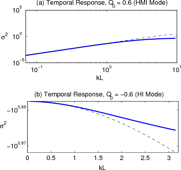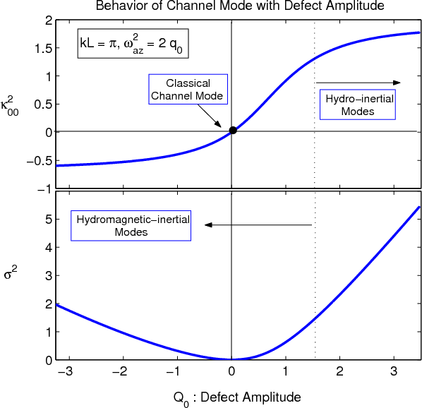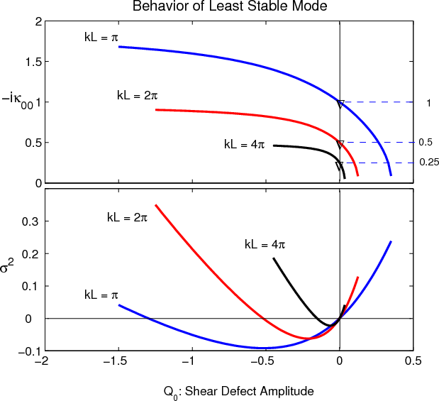 - The mode existence dependency upon the sign of Q0 was checked for other shear profiles (for instance, by replacing the top-hat with a truncated parabolic profile). Aside from differences in the magnitude of the temporal response and the multiplicity of modes allowed, the aformentioned sign dependency still holds.