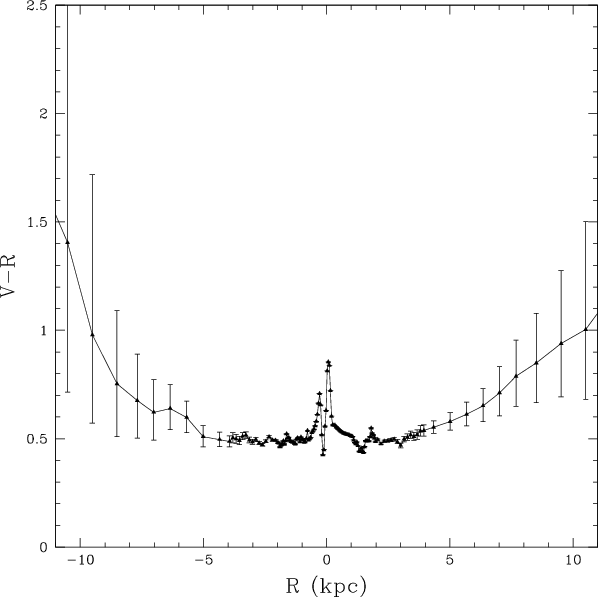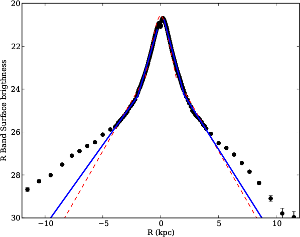 beyond 4-5 kpc. Above 5 kpc, the galaxy light