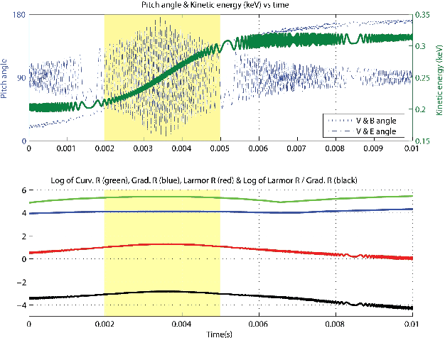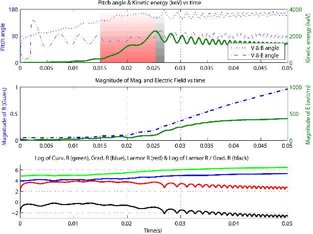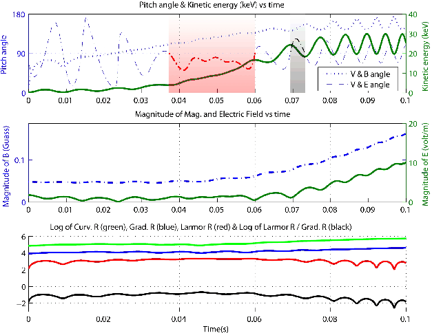 - For electrons, there were only two phases of acceleration: (a) perpendicular acceleration and (b) parallel acceleration, both due to drifts. Due to much smaller electron Larmor radii and also because of the absence of microscopic magnetic structures in macroscopic MHD simulations, the electrons were not aware of any obvious change of the magnetic field within several gyrations, and consequently there was no phase of non-adiabatic acceleration whereby they could be de-magnetized and continuously accelerated.