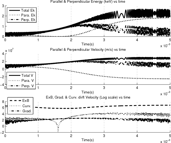 ). Therefore gradient drifts favored the drifting acceleration more than the curvature drifts in the beginning of the acceleration. However, after the particles' parallel energy became much higher than the perpendicular energy, the curvature drift became more important than the gradient drift.