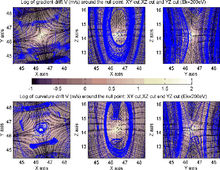 drift was always much larger than the gradient and curvature drifts. Hence electrons were not accelerated significantly near the null.