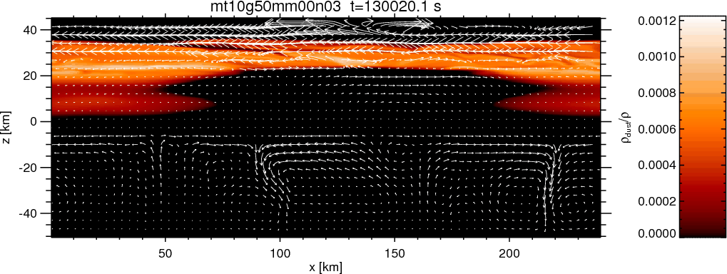 for dust particle formation to occur in late-type M dwarfs. These grains should sink under the influence of gravity (