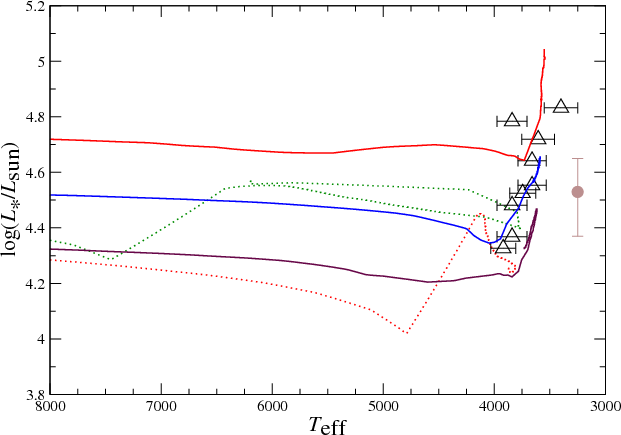 - Note that Alexander et al. (2009) derive a slightly older age (18-24 Myr) for RSGC3, based on a fit to isochrones for non-rotating stellar populations by Marigo et al. (2008). The difference is most likely due to the extinction laws assumed.