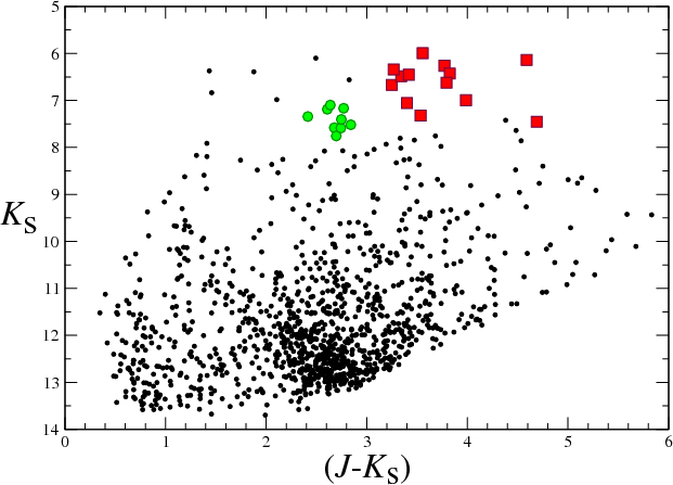 photometry to identify the RSG population. Based on the spatial concentration of bright red stars (Fig. 2), we start by taking 2MASS photometry for stars within