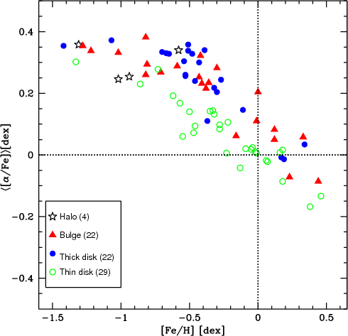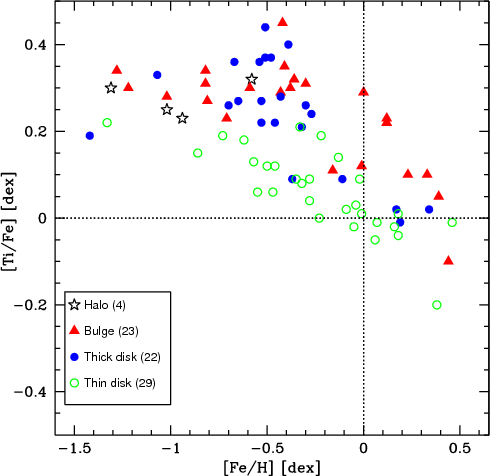 comparison of bulge giant stars with thick disk dwarf stars, Zoccali et al. (2006),