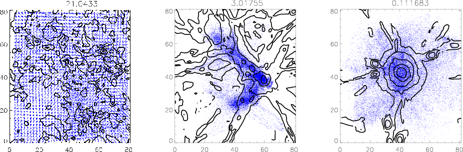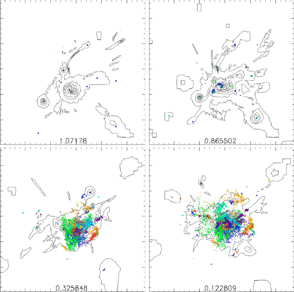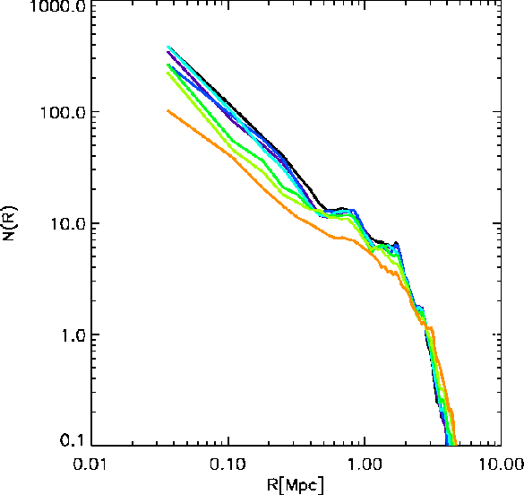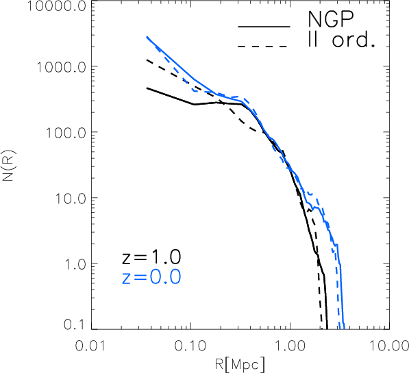 - Halo positions and virial parameters were computed according to a halo finder algorithm working with spherical gas+DM matter over-density, specifically designed for Eulerian simulations (e.g. Gheller et al. 1998; Vazza et al. 2009a).