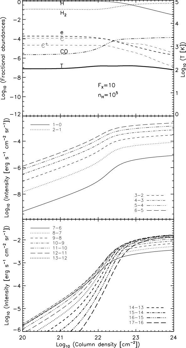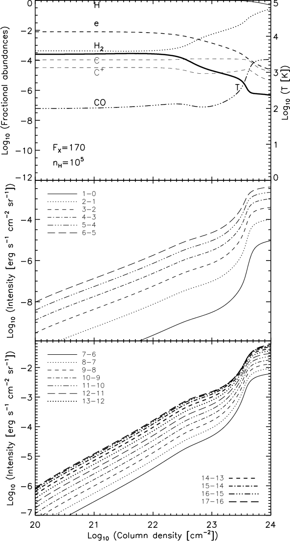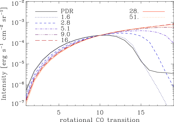 the (17-16) transition. A measurement of such high-J lines allows one to distinguish observationally between XDRs and PDRs. For the recently observed z=6.42