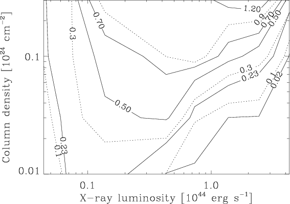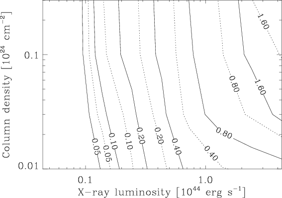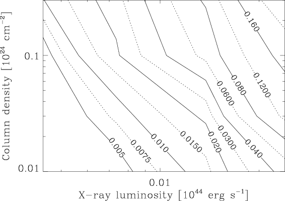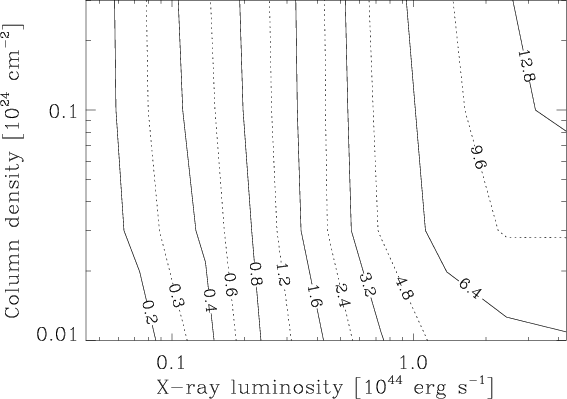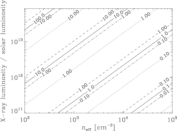 - For the conversion between X-ray luminosity and flux, we assumed optically thin conditions. One may need to correct for further attenuation in case of large filling-factors.