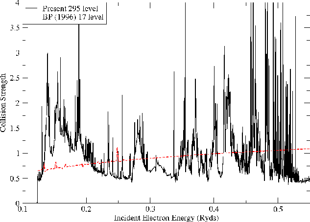 Huge advances in computing capabilities and codes in more recent years resulted in the parallel R-matrix calculation of Bautista & Pradhan (1996). This calculation was performed using the early parallelised R-matrix codes of Hummer et al. (1993).