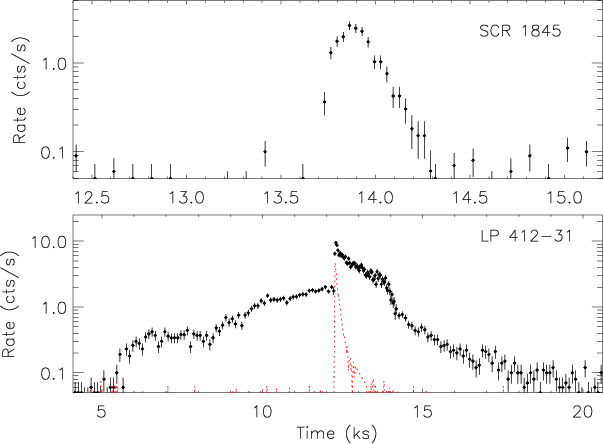 Also less active very late-type stars exist, the M 8 dwarf SCR J1845-6357 with