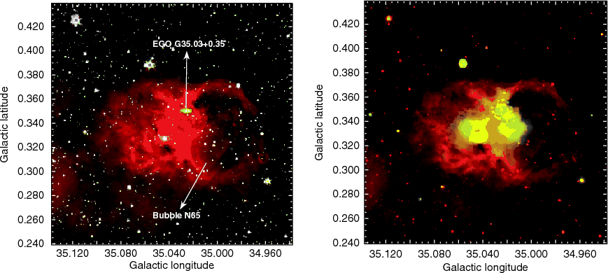 .6 (Churchwell et al. 2006). Close to N65, over one of its borders,