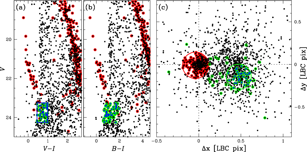 The dispersion of the cluster stars over a large field has the additional inconvenience of a strong contamination of all of the evolutionary sequences in the CMD by foreground/background objects. The two wide-field imagers (WFIs) at the two prime foci of LBT provide us with a unique opportunity to overcome the field size problem. Moreover, the availability of multi-epoch imaging allows us to measure proper motions, thus alleviating the issue of field contamination.