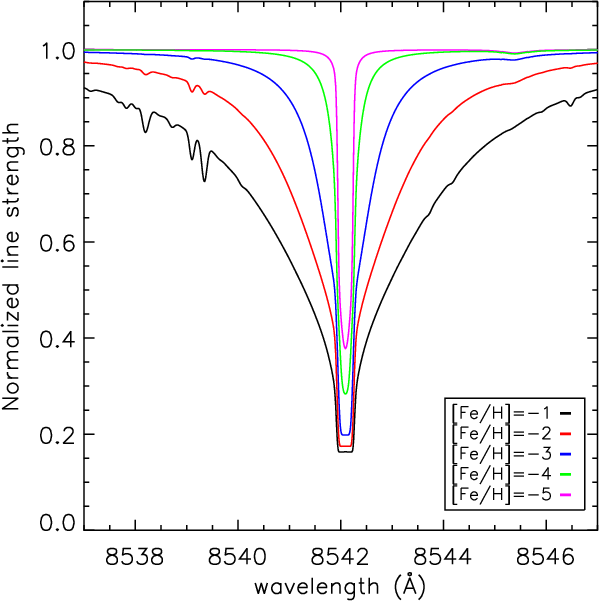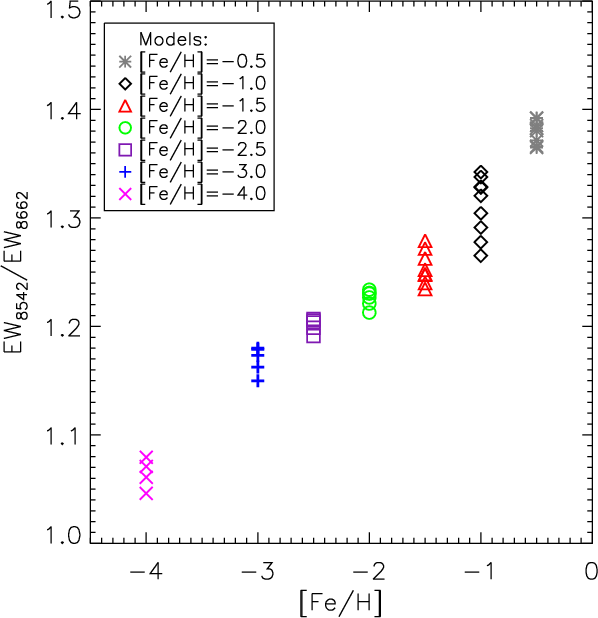 - From our synthetic modeling results we can check this value by evaluating the ratio in line strength between the two strongest CaT lines. These results are shown in Appendix B.
