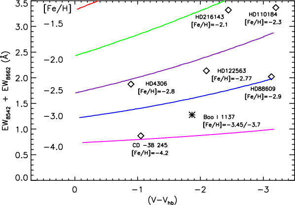 Galactic halo (Helmi et al. 2006). These metallicities are inferred from the line strengths of the Ca II NIR triplet (CaT) lines. Recently, Kirby et al. (2009)