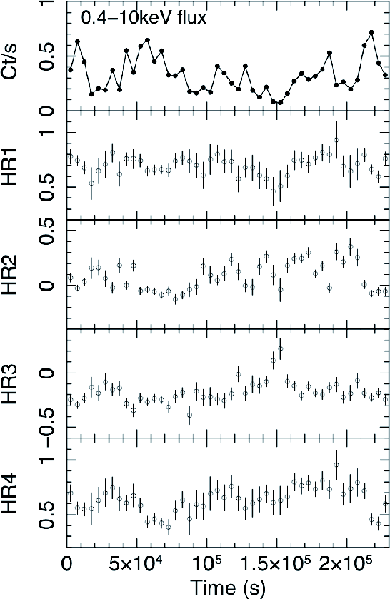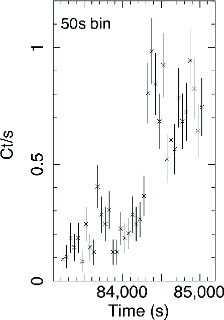 Figure 1: The X-ray light curve of NGC 4395 during the Suzaku observation. The background-subtracted counts in the 0.4-10 keV band from the three XISs are summed together. Each timebin is of a 100 s duration. |