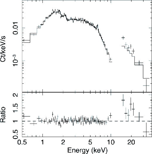 spectrum below 10 keV is strongly absorbed by partially ionized