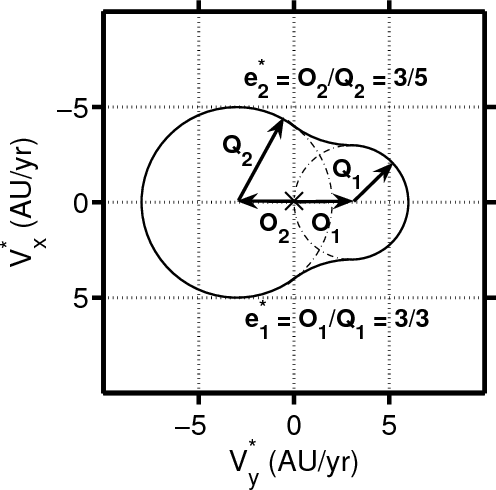 ``zero-velocity contour'' in the synodic coordinate system. The orbital
