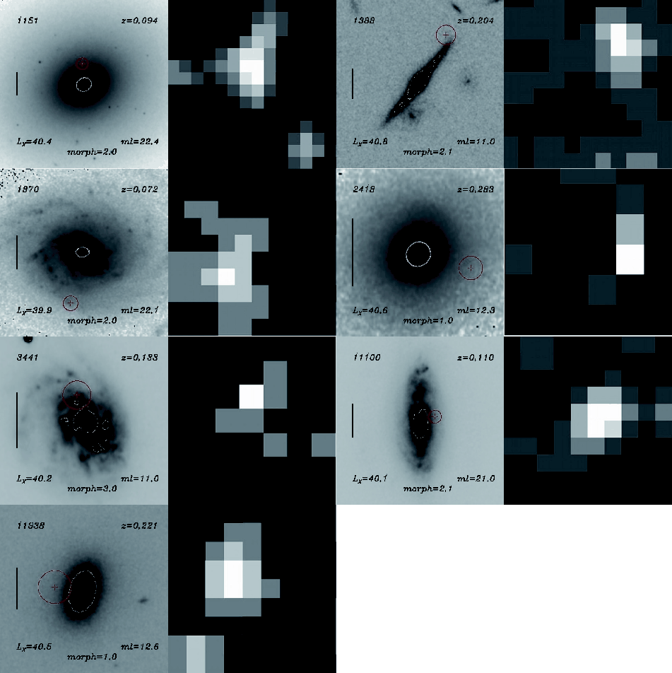 Context. Using Chandra observations we identified a sample of seven off-nuclear X-ray sources in the redshift range