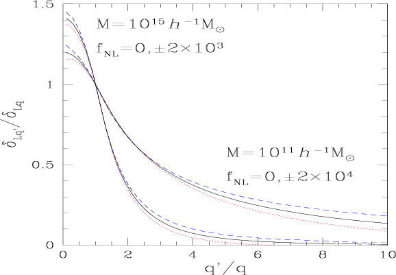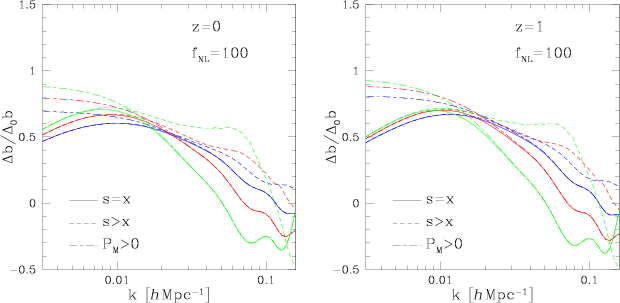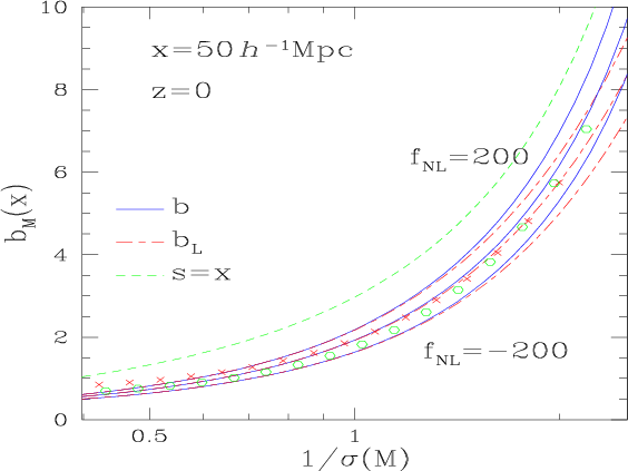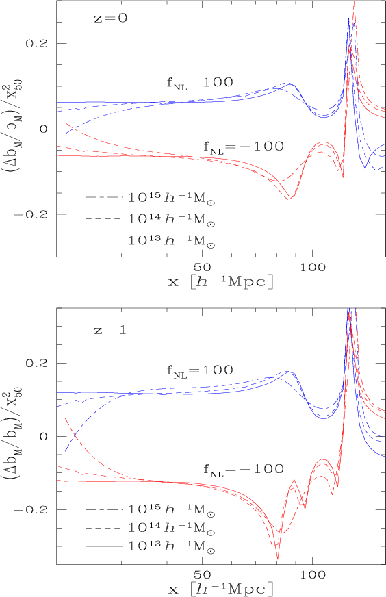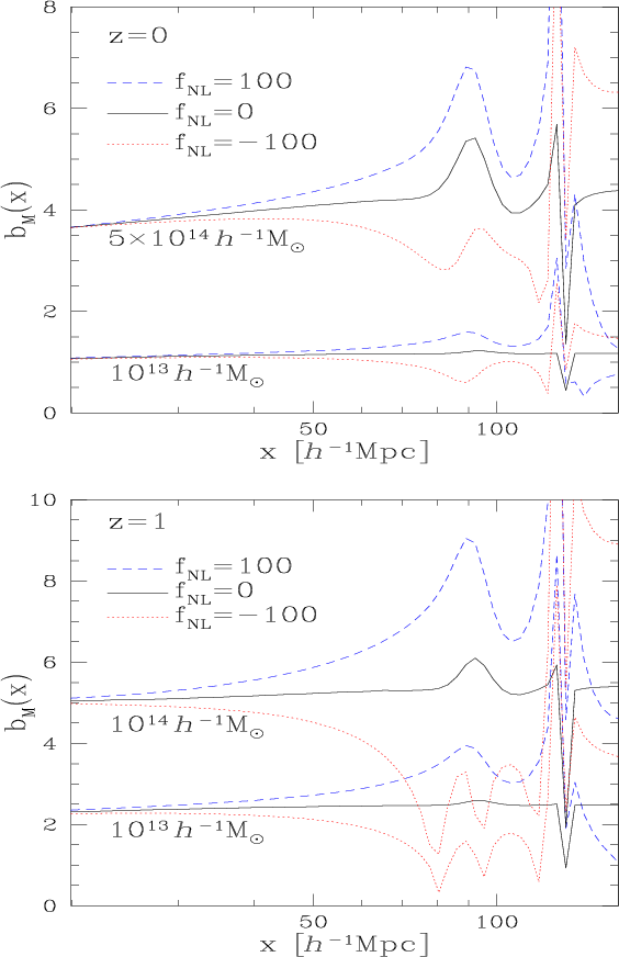 where bM(k,0) is the Gaussian-case bias (defined as the ratio of the halo and matter power spectra, bM2(k)=PM(k)/P(k), for objects of mass M). Here