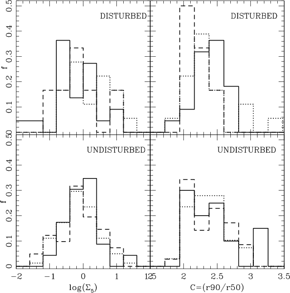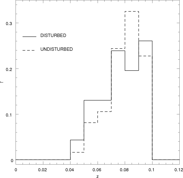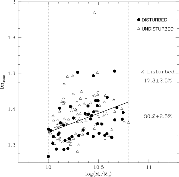 We also considered the fraction of disturbed galaxies above the median
