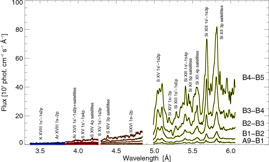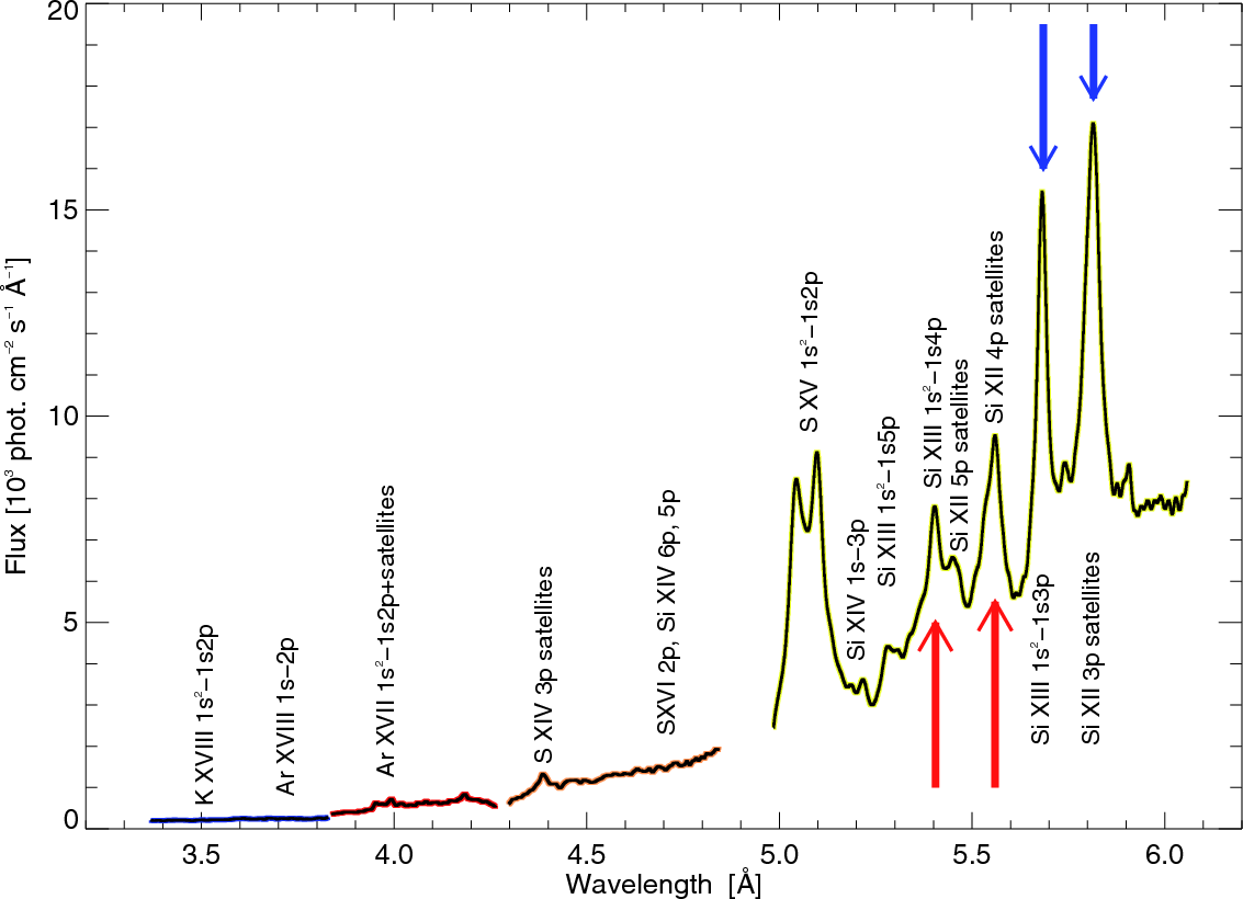 highly ionized Si, S, Cl, Ar, and K, which are suitable for