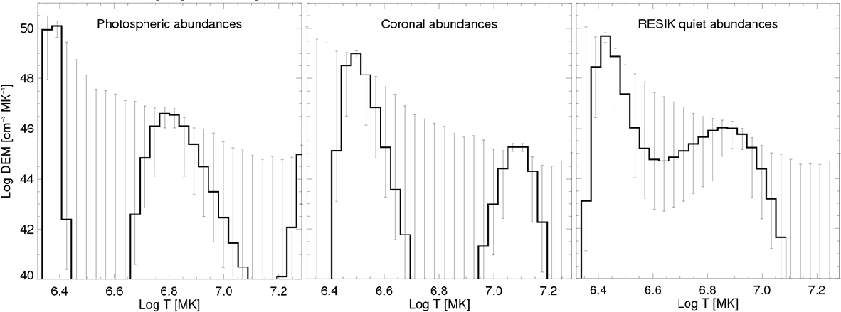 RESIK is a common project between the NRL (USA), MSSL and RAL (UK), IZMIRAN (Russia), and SRC (Poland). This work was partially supported by the International Space Science Institute in the framework of an international working team (No. 108). We acknowledge the travel support from a UK Royal Society/Polish Academy of Sciences International Joint Project. CHIANTI is a collaborative project involving the NRL (USA), RAL (UK), MSSL (UK), the Universities of Florence (Italy) and Cambridge (UK), and George Mason University (USA). The research leading to these results received partial funding from the European Commission's Seventh Framework Programme (FP7/2007-2013) under grant agreement No. 218816 (SOTERIA project, www.soteria-space.eu).