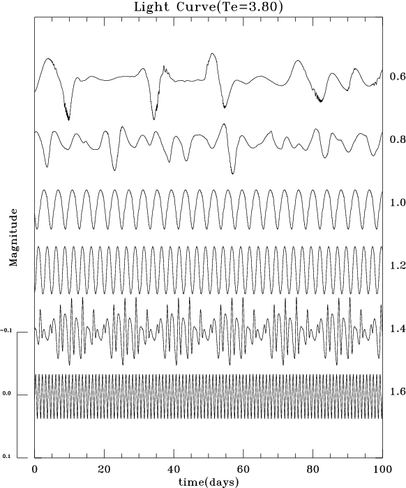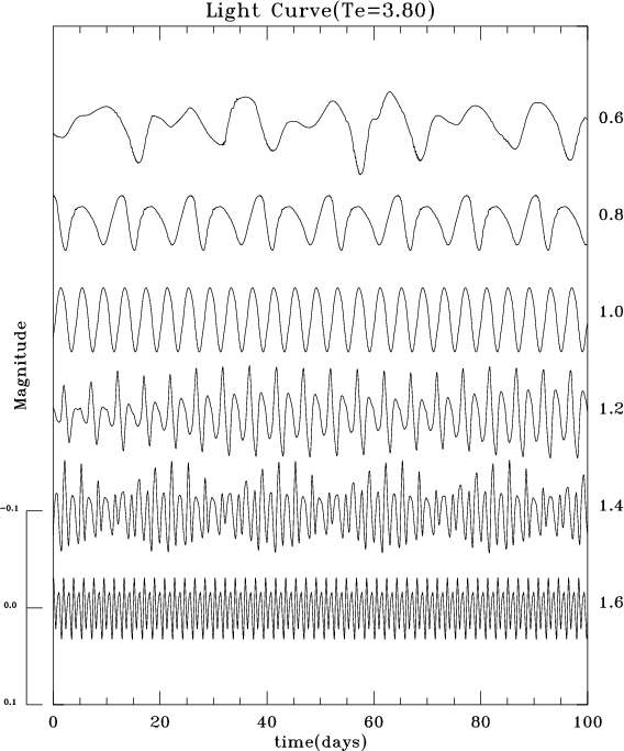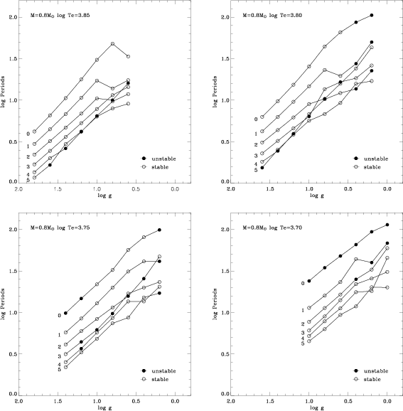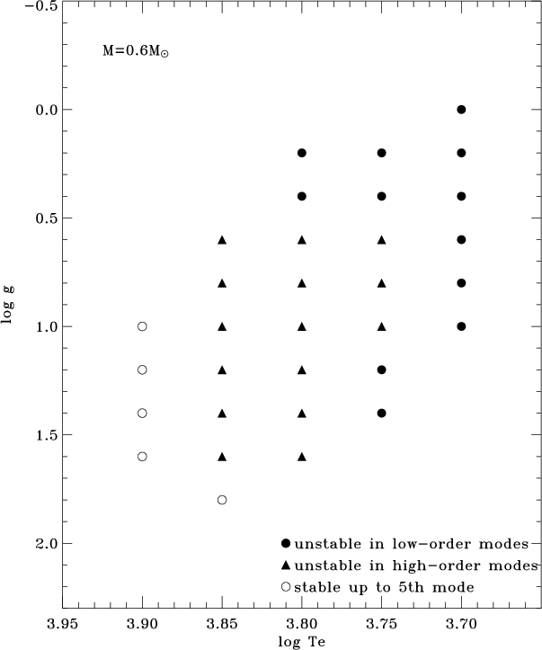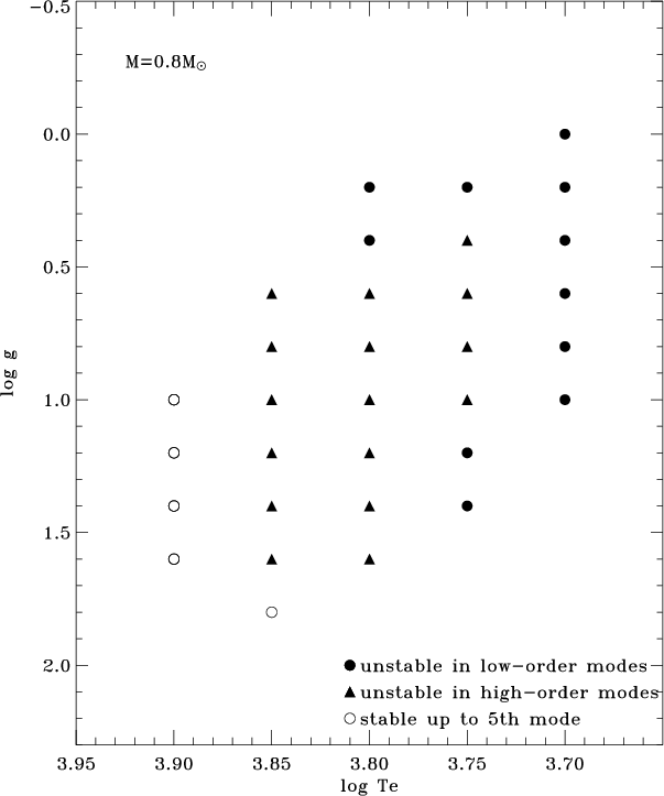 gravity and irregular pulsation for lower gravity (see, Fig. 11).