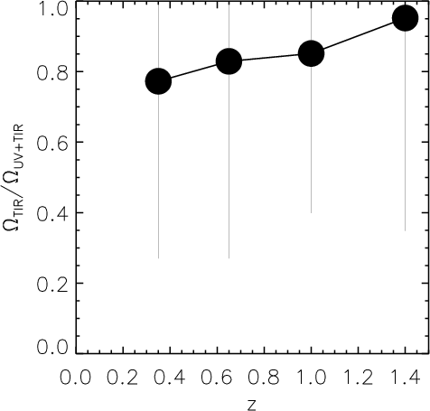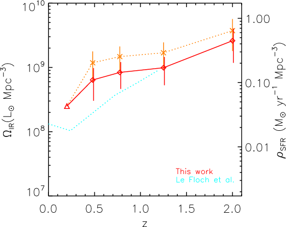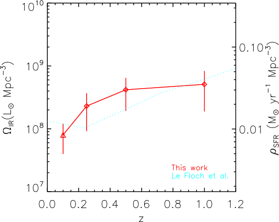 Bell et al. (2005) estimate that IR luminosity density is 7 times higher than the UV luminosity density at z 0.7 than locally. Takeuchi et al. (2005) report that UV-to-IR luminosity density ratio,