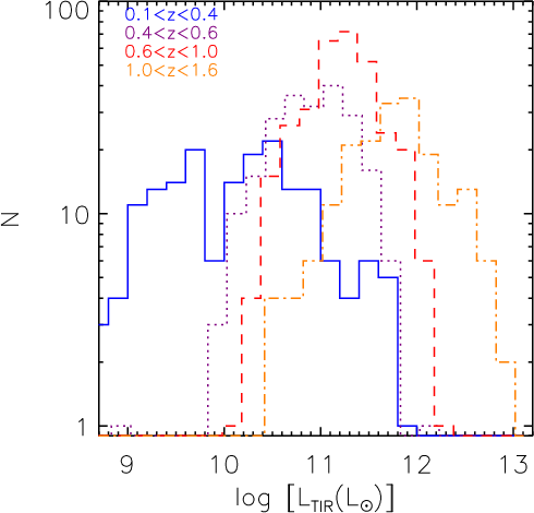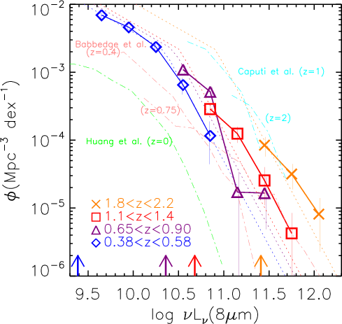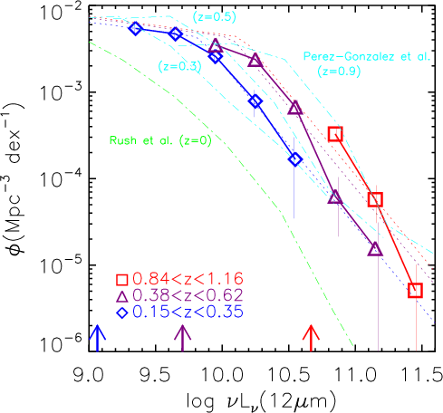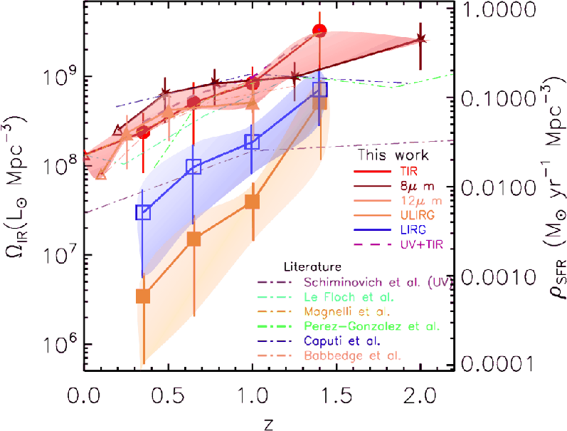 - The TIR LFs show good agreement with Magnelli et al. (2009), but are smaller than in Le Floc'h et al. (2005). At