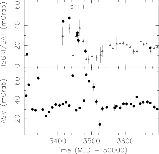 observations by the WATCH on EURECA, the ASM on RXTE, the WFCs on BeppoSAX, the FREGATE on HETE-2, the IBIS/ISGRI on INTEGRAL, and the BAT on Swift, as well as pointed observations with the PCA and HEXTE on RXTE.