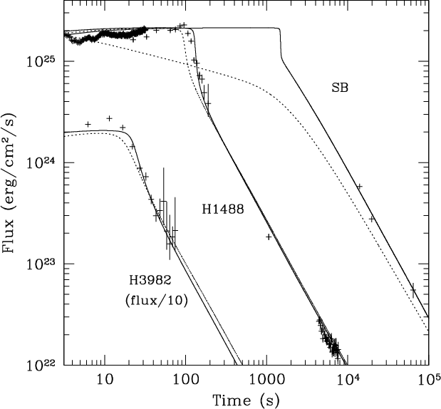 A few bursts last hours to half a day (Cornelisse et al. 2000; Strohmayer & Brown 2002; for a review see, e.g., Kuulkers 2004). Such bursts show the same characteristics as the typical bursts described above, except that the energy output is about a thousand times higher. They recur on time scales of months to years. Their origin is different from the typical bursts, because they are thought to be due to unstable burning of C deeper in the neutron star envelope (Cumming & Bildsten 2001; Strohmayer & Brown 2002). These long events are called superbursts (Wijnands 2001). Typical bursts are seen up to the time of the superbursts. However, they cease to occur after the superburst, for up to about a month (see, e.g., Cornelisse et al. 2002a; Kuulkers et al. 2002a). This is thought to be due to the superburst heating up the surface layer, and therefore preventing the unstable ignition of H and/or He (Cumming & Macbeth 2004).