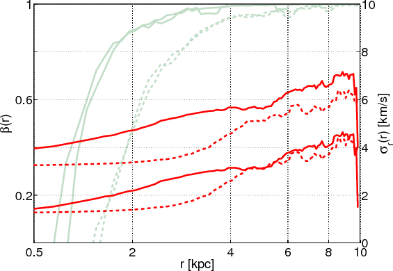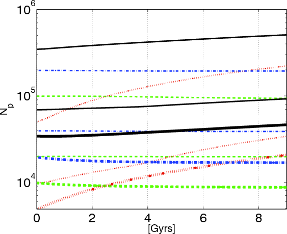 - This might seem a numerical test on the stability of the equilibrium configuration, but it is not, because it is model dependent. The treecode approach prefers the cell-cell force computation, for distant interactions by reducing the role played by the softening length (which is, on the other hand, dependent on the growing number of particles used in the systems). The stability of the equilibrium configurations will not be the subject of further investigation here.
