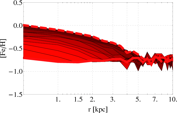 We start our analysis by demonstrating the gravitational stability of the isolated model. Then, once the stellar processes are included, we combine the dynamical and chemical analysis. In Sect. 2 we outline our research approach. In Sect. 3 we set up the initial model, in Sect. 3 we present the evolution of the models with and without stellar processes, in Sect. 5 we add the chemistry analysis and in Sect. 6, we discuss our results.