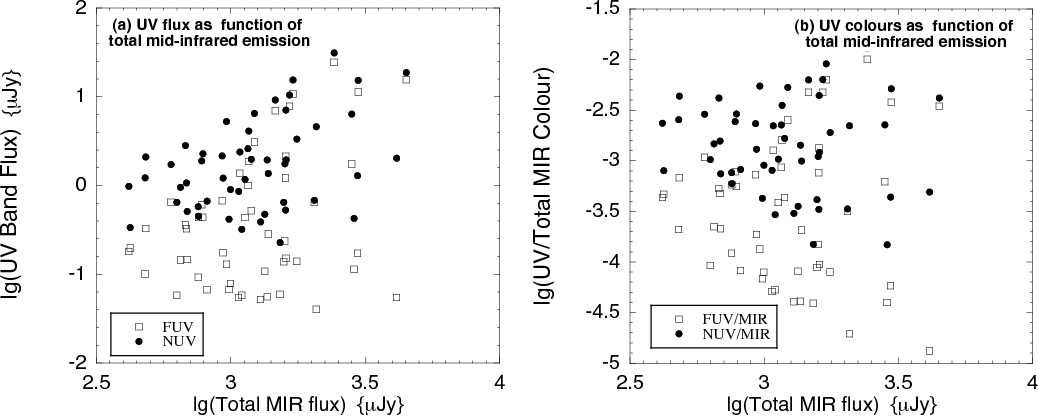 The authors would like to thank Denis Burgarella for kindly supplying the GALEX data for the GOODS-N region and the referee, whose comments improved the clarity of this work. W.-S.J. and H.M.L. are supported by Korea Astronomy and Space Science Institute. H.M.L. was supported by National Research Foundation of Kore (NRF) grant No. 2006-341-C00018.The AKARI Project is an infrared mission of the Japan Space Exploration Agency (JAXA) Institute of Space and Astronautical Science (ISAS), and is carried out with the participation of mainly the following institutes; Nagoya University, The University of Tokyo, National Astronomical Observatory Japan, The European Space Agency (ESA), Imperial College London, University of Sussex, The Open University (UK), University of Groningen / SRON (The Netherlands), Seoul National University (Korea). The far-infrared detectors were developed under collaboration with The National Institute of Information and Communications Technology.