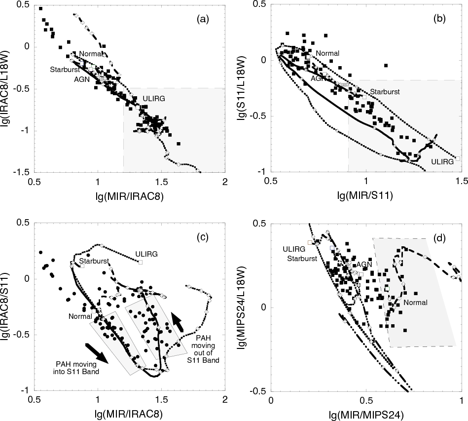 catalogue we present colour-colour diagrams that map the passage of PAH