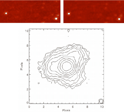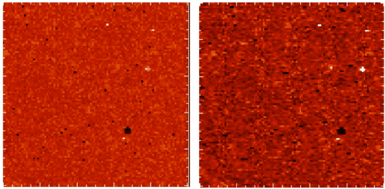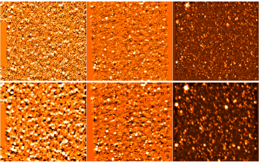 Unfortunately, the FU-HYU observations in the GOODS-N field were not dithered during the observation operation resulting in many hot and bad pixels leaving holes in the final co-added images. Moreover the distortion correction in the standard IRC pipeline toolkit blurs the hot pixels compounding the problem. In Sect. 3 we describe in detail our extensive additional processing utilizing intrinsic jitter in the spacecraft observations as an effective dithering and interrupting the standard IRC pipeline toolkit before the distortion correction stage to carry out independent re-gridding of the pixels onto a finer mesh, co-adding and re-binning, resulting in final dithered images without the hot pixels and line artifacts seen in the original processed data.