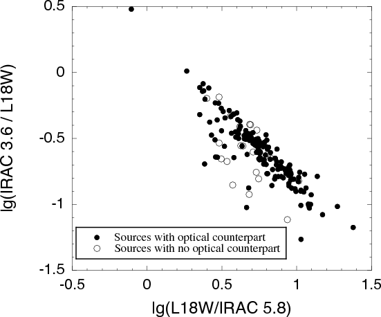 mid-infrared bands from AKARI (IRC-L18W 18 micron band) and Spitzer